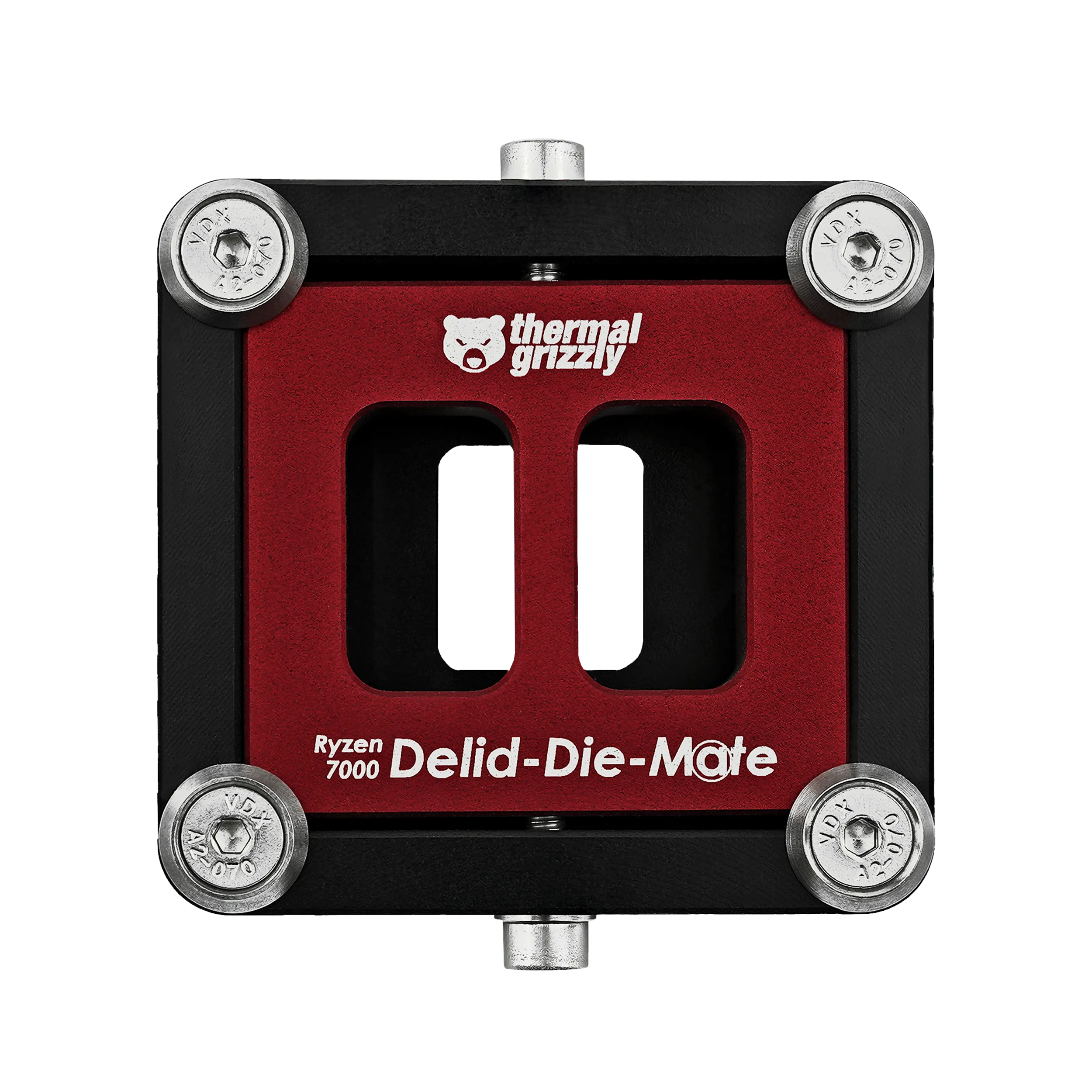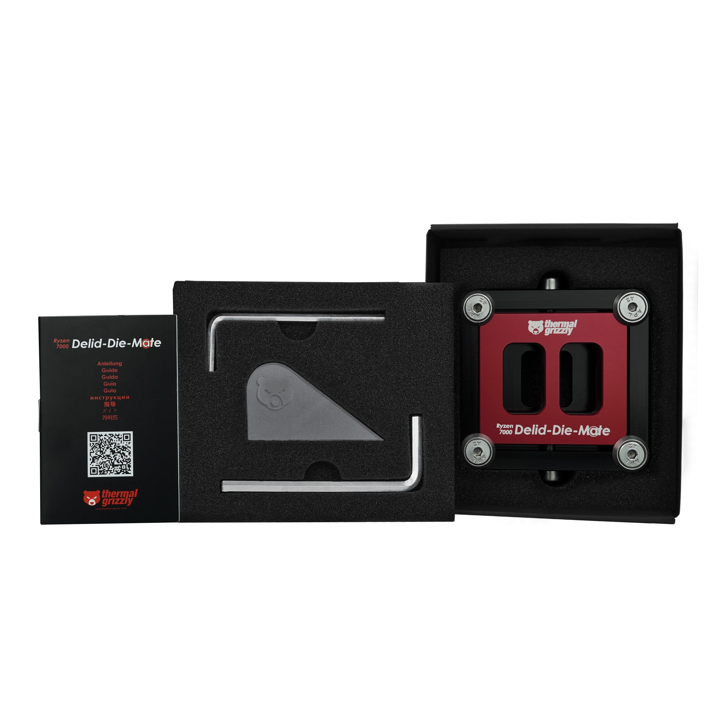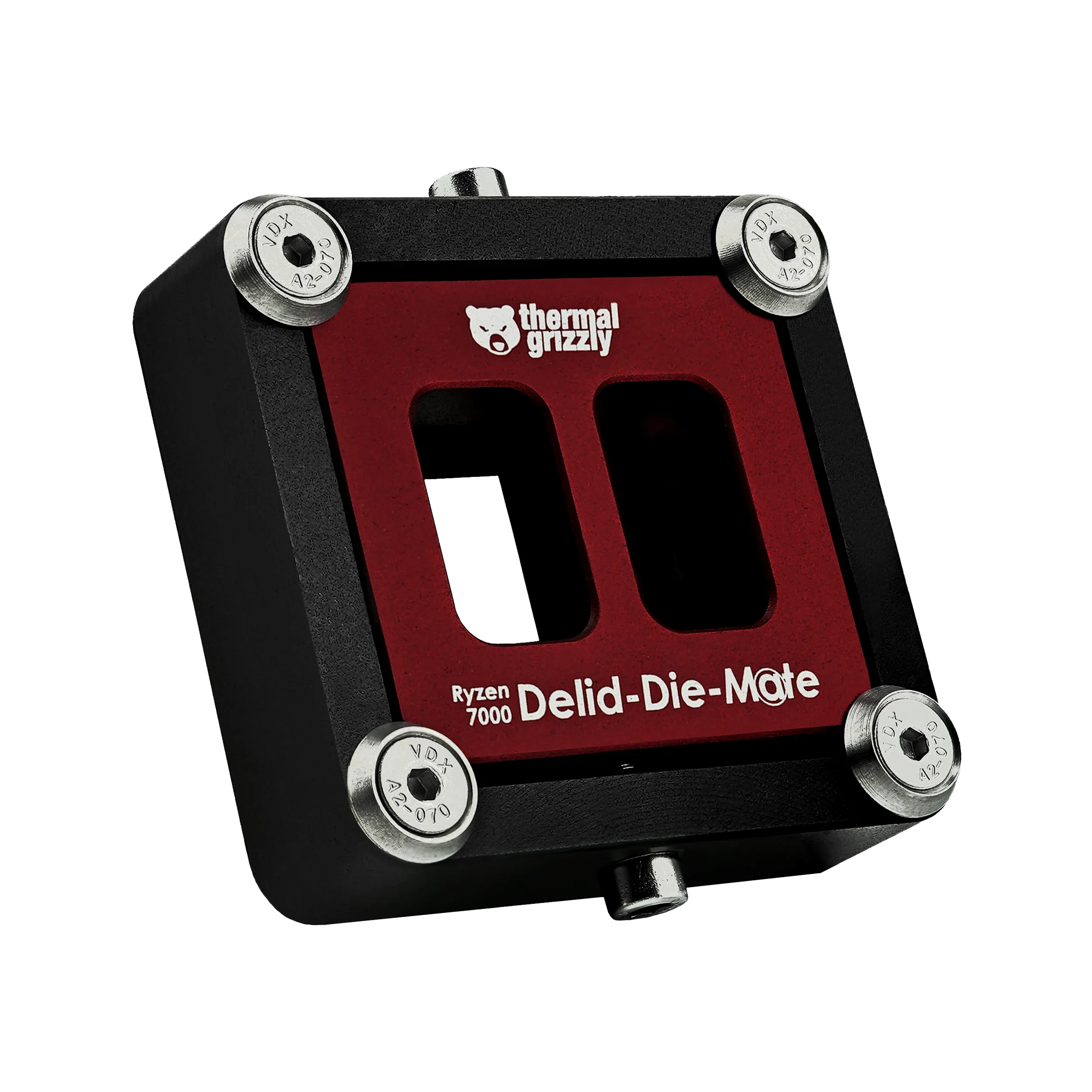 Der Ryzen 7000 Delid-Die-Mate ist ein Werkzeug zum Entfernen des Heatspreaders („Köpfen“, „delidden“) bei AMD Ryzen 7000/8X00G/9000-Prozessoren. Durch das Entfernen des Heatspreaders können die CPUs zum Beispiel via „Direct Die“ gekühlt werden. Beim sogenannten „Direct Die“ wird der CPU-Kühler direkt auf den CPU-Dies und dem I/O-Die des Prozessors montiert. Durch das Weglassen des Heatspreaders im Kühlkreislauf ist ein deutlich optimierter Wärmeübergang von den Dies zum CPU-Kühler möglich.