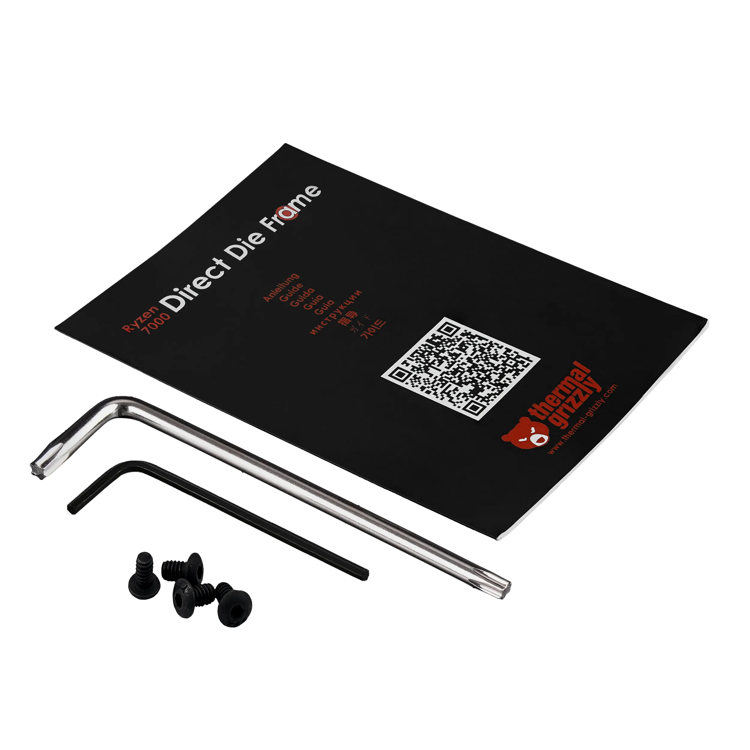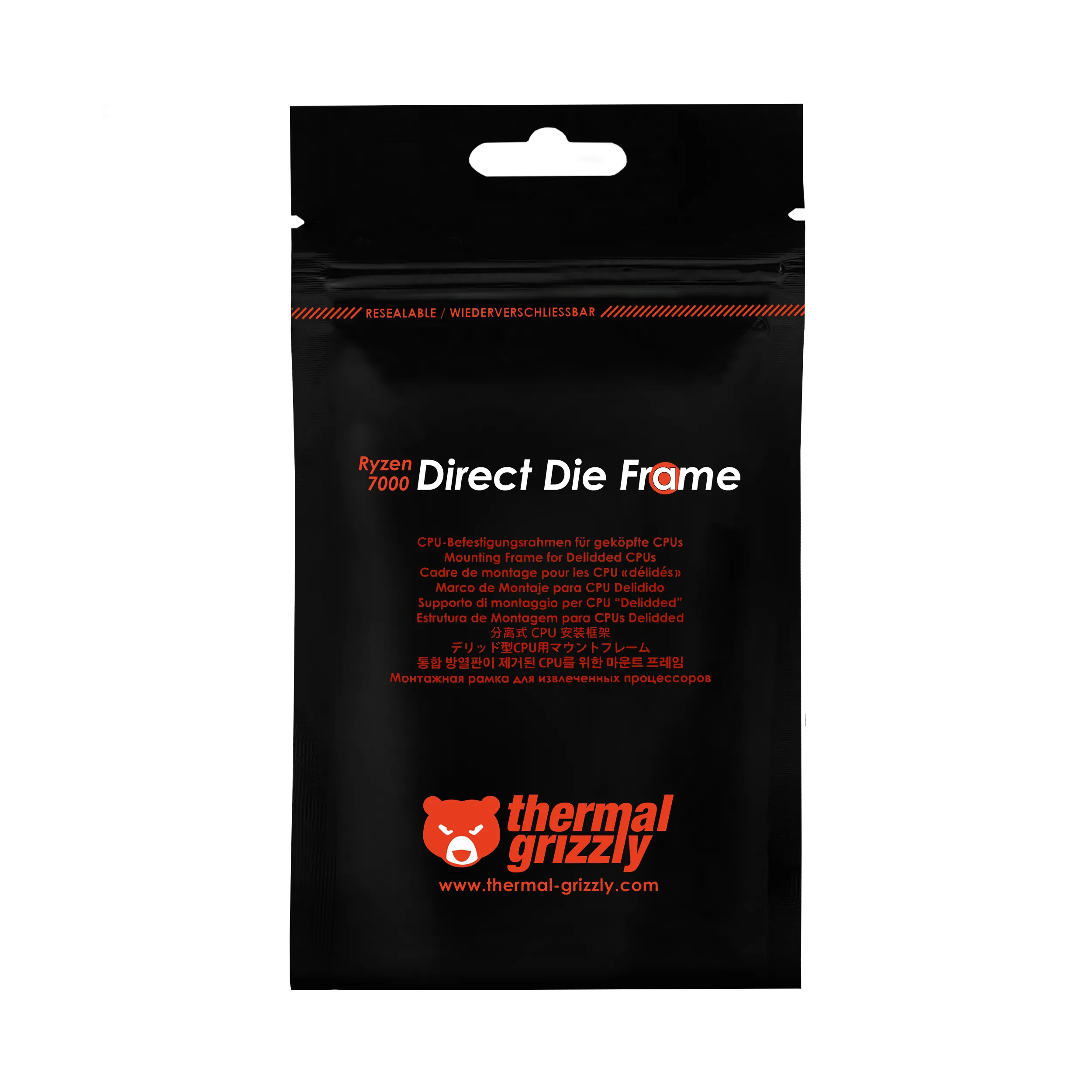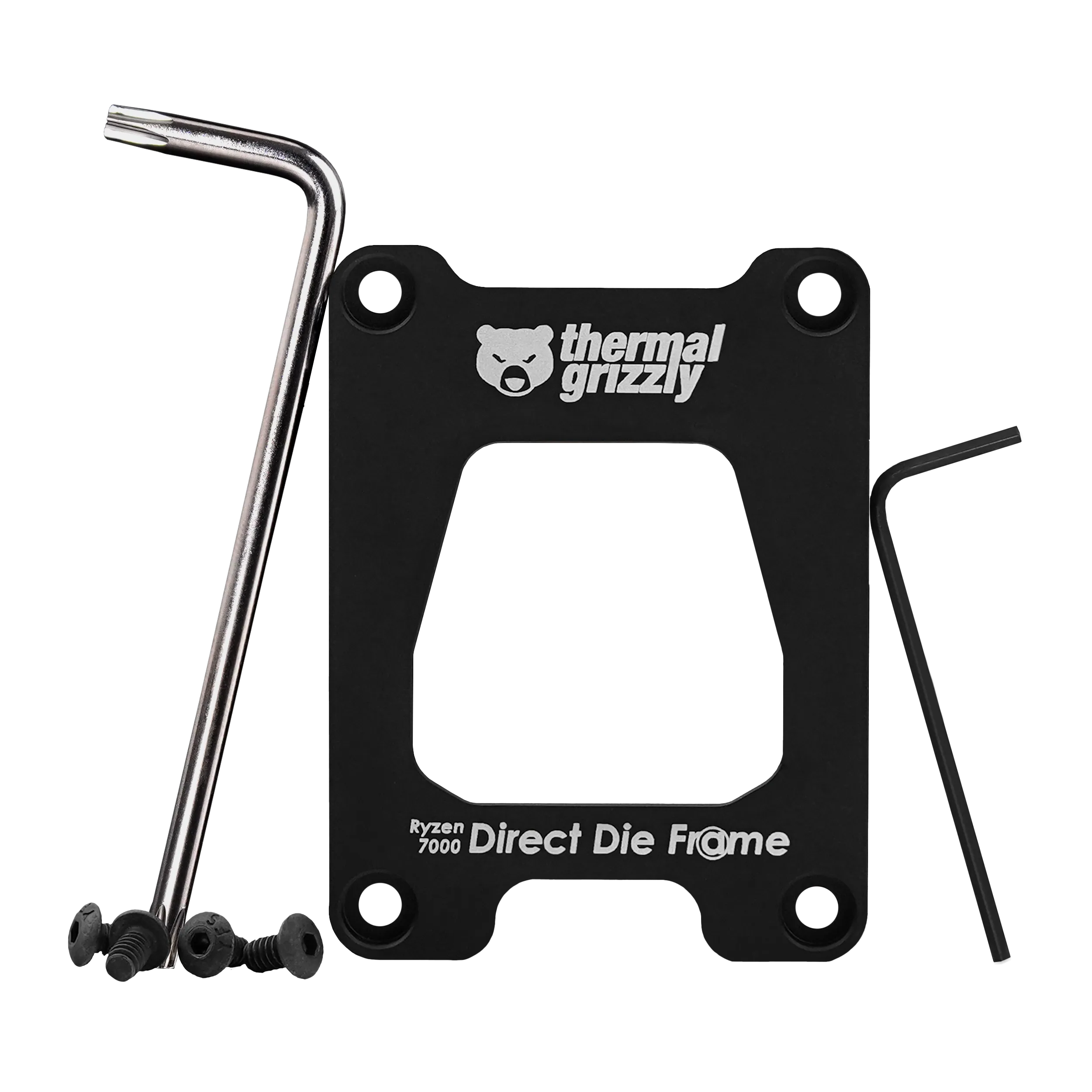 Der AMD Ryzen 7000 Direct Die Frame ist ein CPU-Befestigungsrahmen zur Montage von Ryzen-7000-Prozessoren ohne den integrierten Heatspreader. Durch das Weglassen des Heatspreaders kann der CPU-Kühler direkt auf den Chiplets des Prozessors montiert werden, wodurch deutlich niedrigere Temperaturen im Betrieb möglich sind. Dies ist nicht nur für Extrem-Overclocker auf Rekorde-Jagd interessant, sondern auch für Gamer und Content Creator.