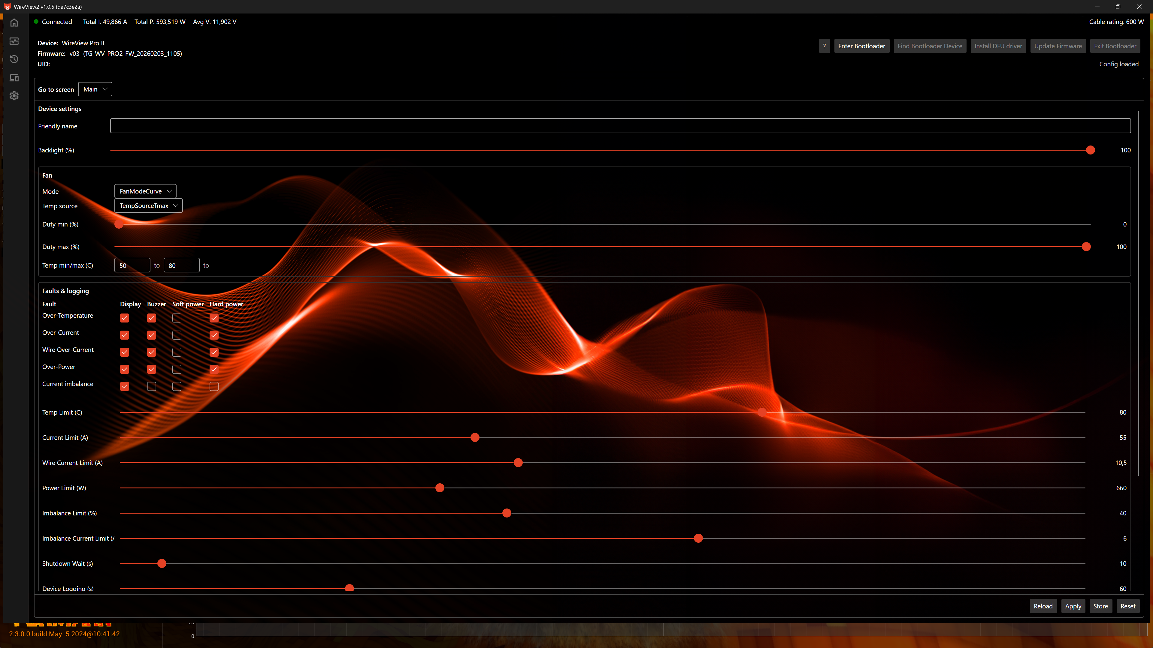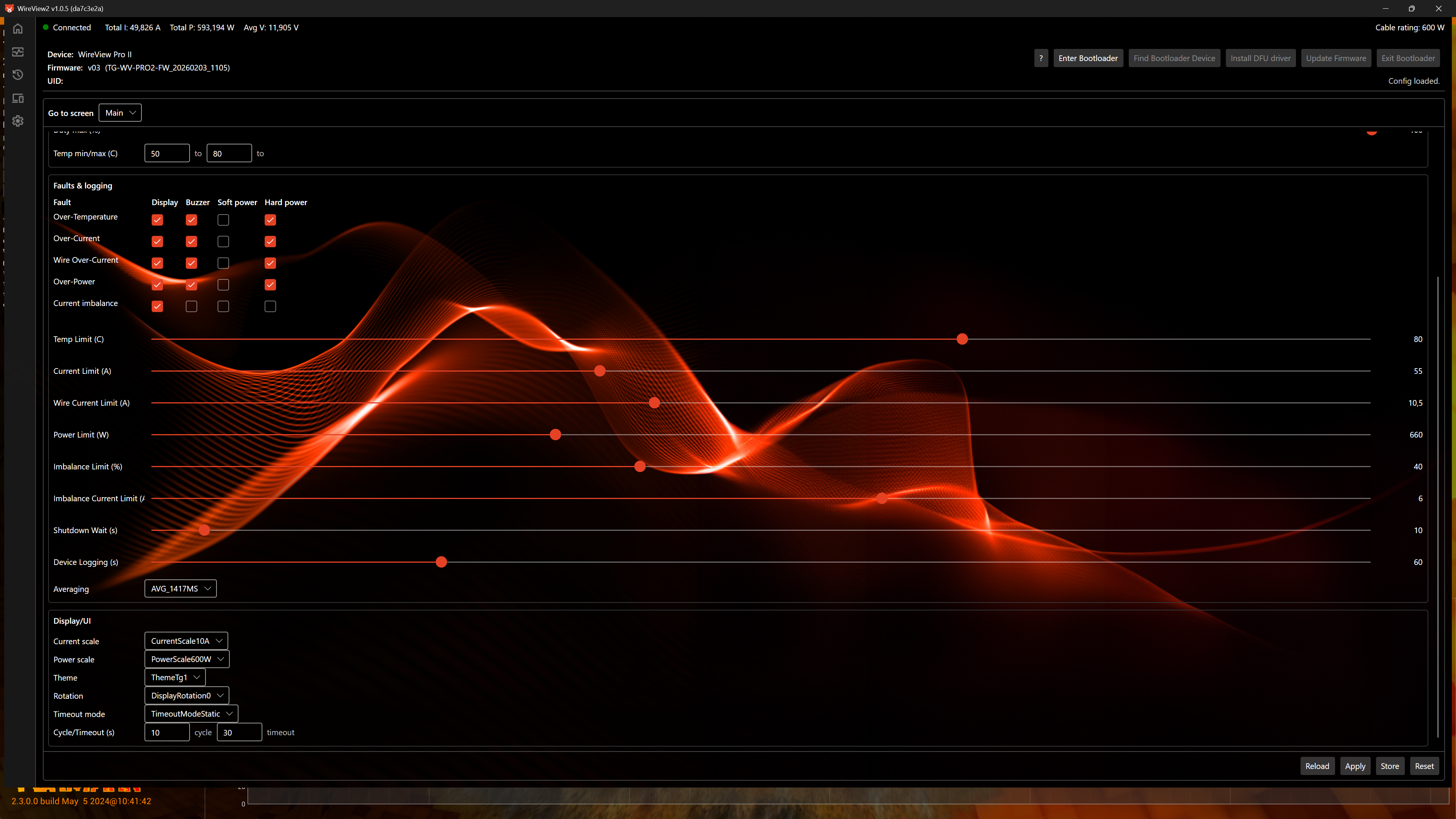- Vollständige Betriebssystemintegration: Zugriff auf und Verwaltung aller unterstützten Funktionen des WireView Pro II direkt über die Software, einschließlich der Grenzwerte der Stromverteilung pro Pin.