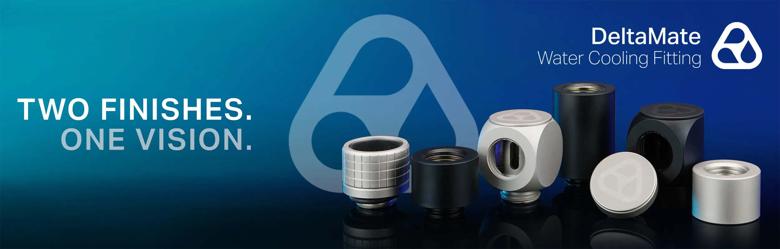Thermal Grizzly now offers a wider selection of fittings. The machined brass line-up is now also available with a matt nickel finish. Newly added are a 90° rotary fitting and a 14 mm extender, each featuring two G1/4-inch female threads and primarily designed for combining two or more fittings.