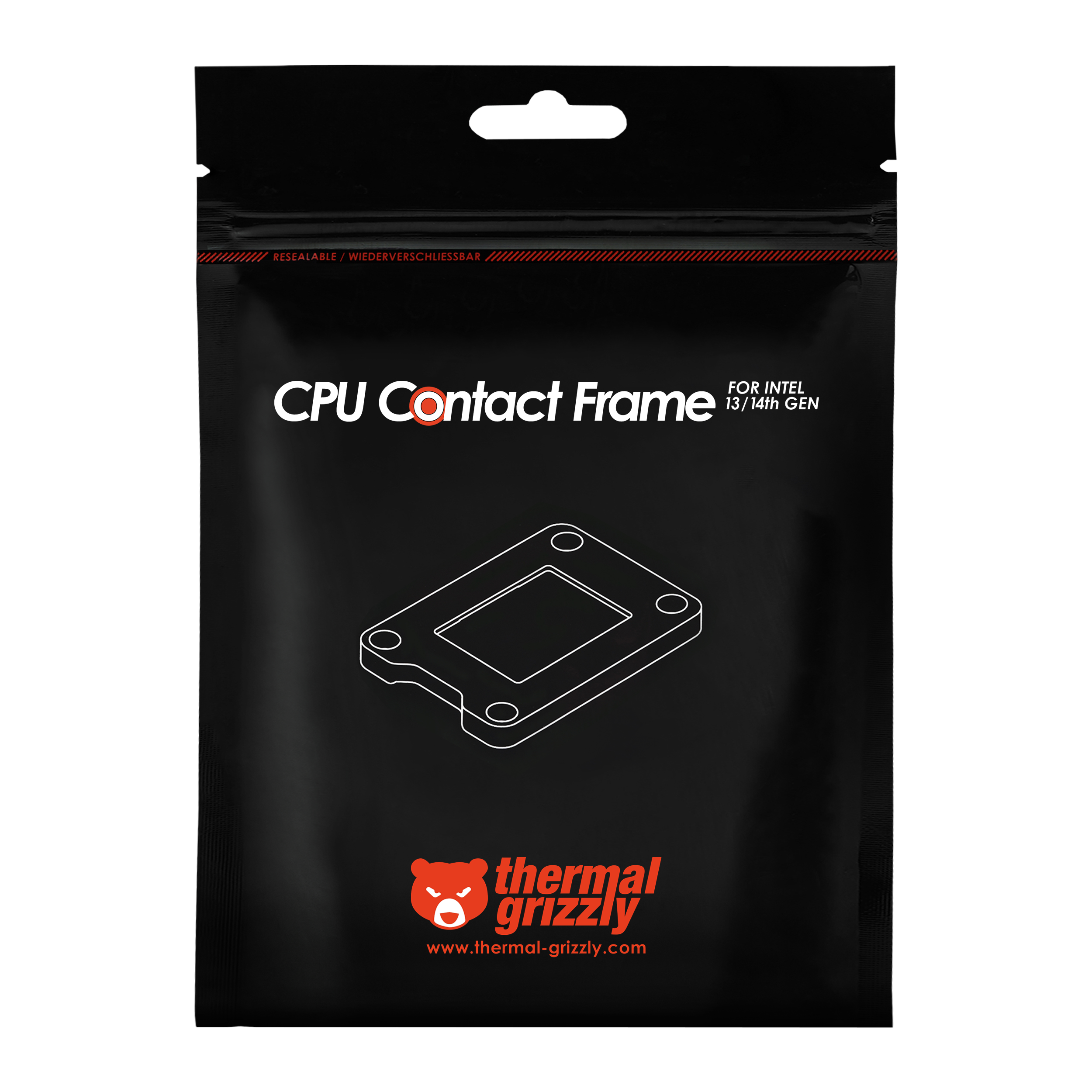 The Intel 13th/14th Gen CPU Contact Frame has a special inner contour to shift the contact pressure from the centre of the CPU to the edges during assembly. This avoids the concave curvature of the IHS. This results in CPU coolers resting better on the processor and a larger contact surface to dissipate the CPU's waste heat.The installation of the Contact Frame is very simple and takes only a few steps. Depending on the CPU cooler and the CPU used, the temperatures of the processor can be noticeably reduced.