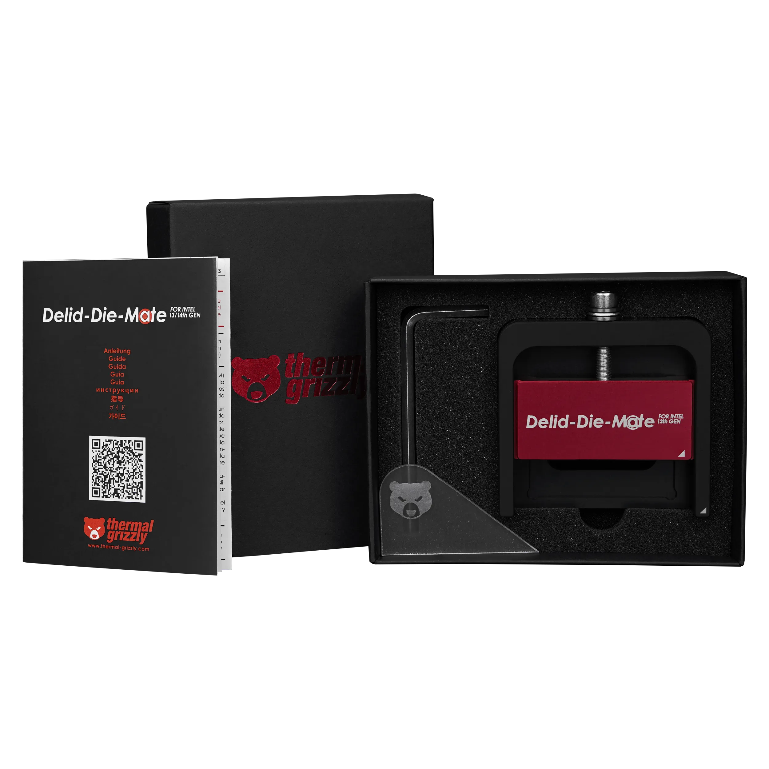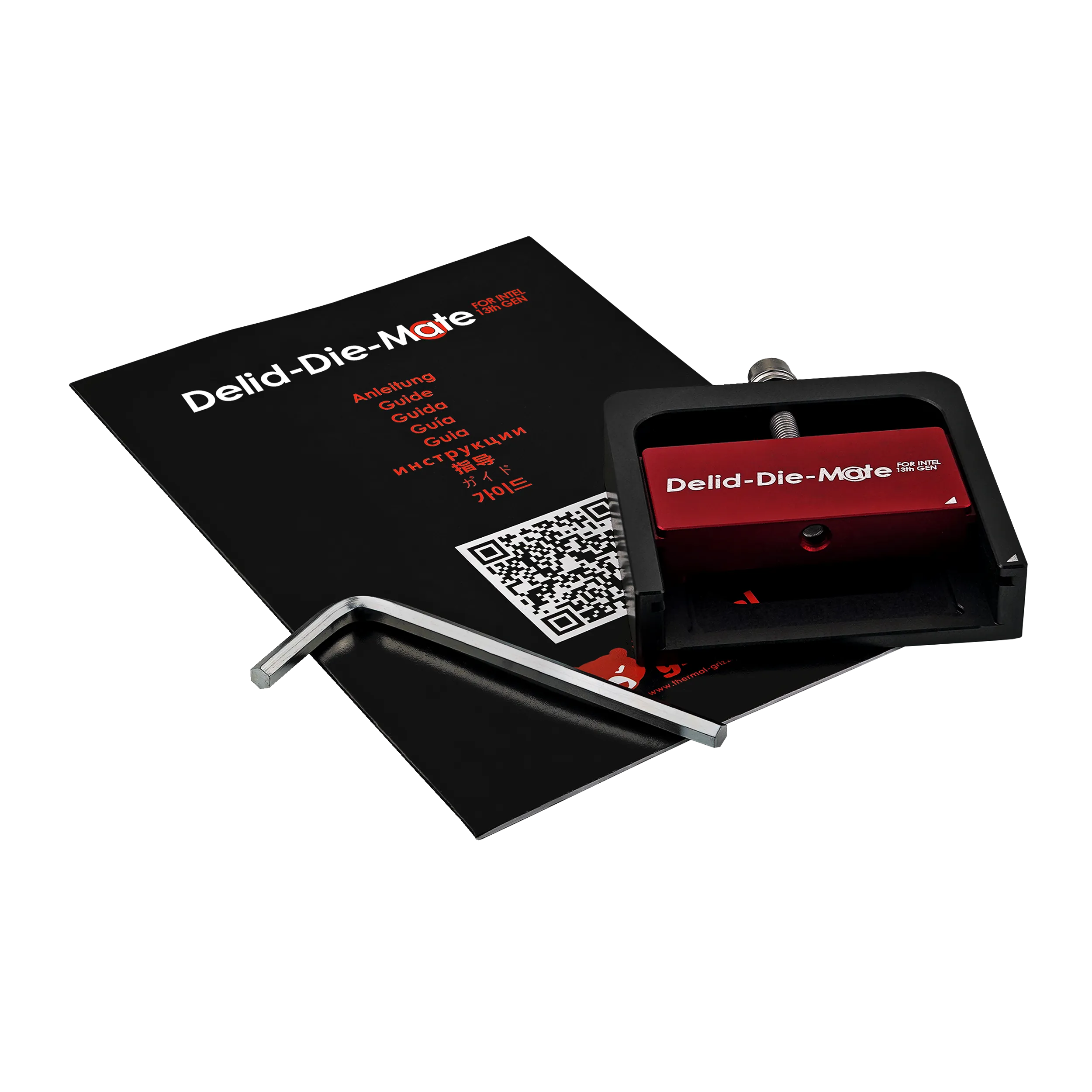 The Delid-Die-Mate Intel 13th Gen is a tool for removing the heat spreader ("delidden") on Intel processors for socket LGA1700. By removing the heat spreader, the CPUs can be cooled via "direct die", for example. With the so-called "direct die", the CPU cooler is mounted directly on the processor chip. By omitting the heat spreader in the cooling circuit, a significantly optimised heat transfer from the die to the CPU cooler is possible.