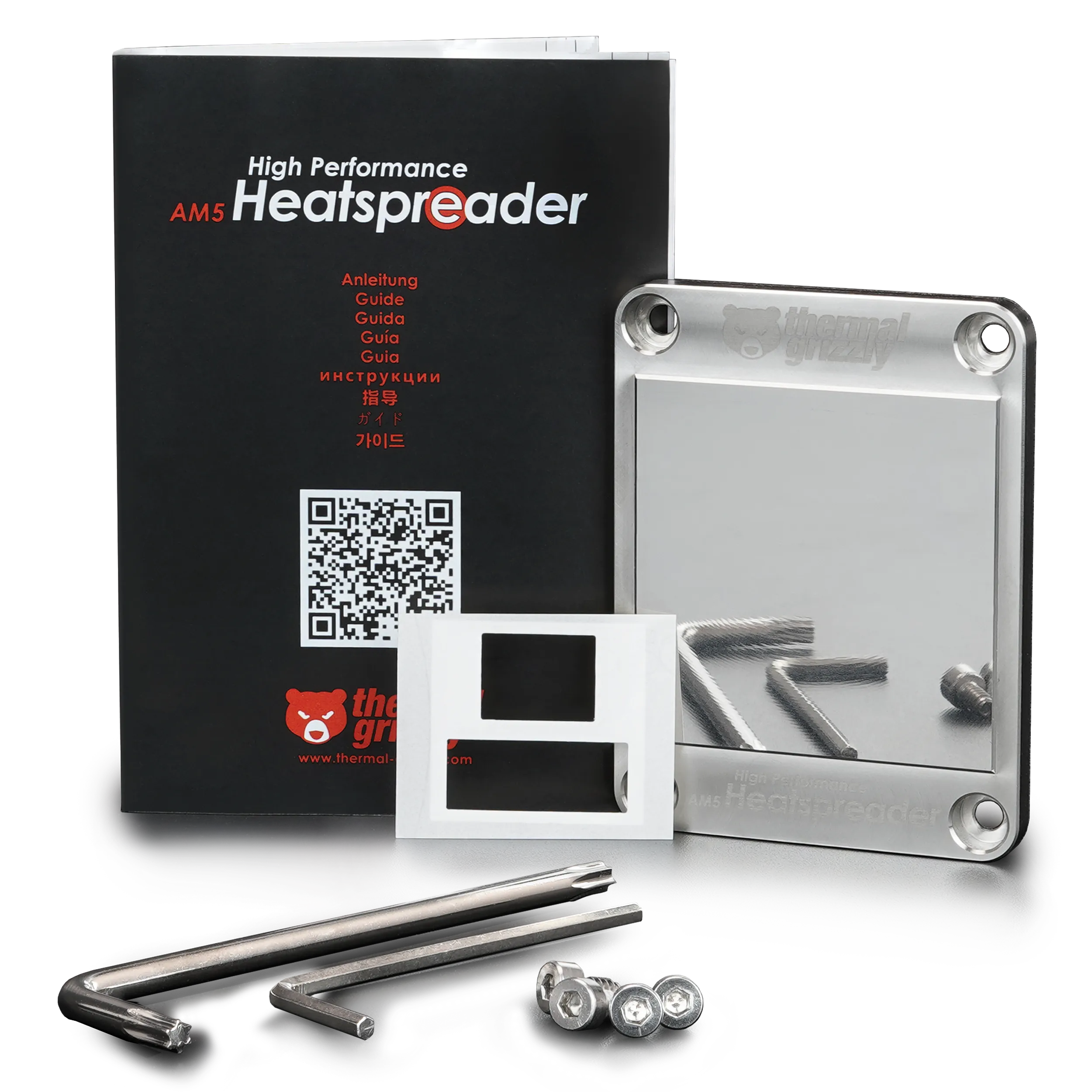 The AM5 High Performance Heatspreader is an upgrade heatspreader for AMD's Ryzen 7000 processors. The nickel-plated copper heatspreader features a 240 percent larger diamond-milled precision surface. This increased surface area over the original heatspreader allows for maximum heat dissipation with air and water coolers, while precision milling ensures extremely low surface roughness for best contact with the heat sink.