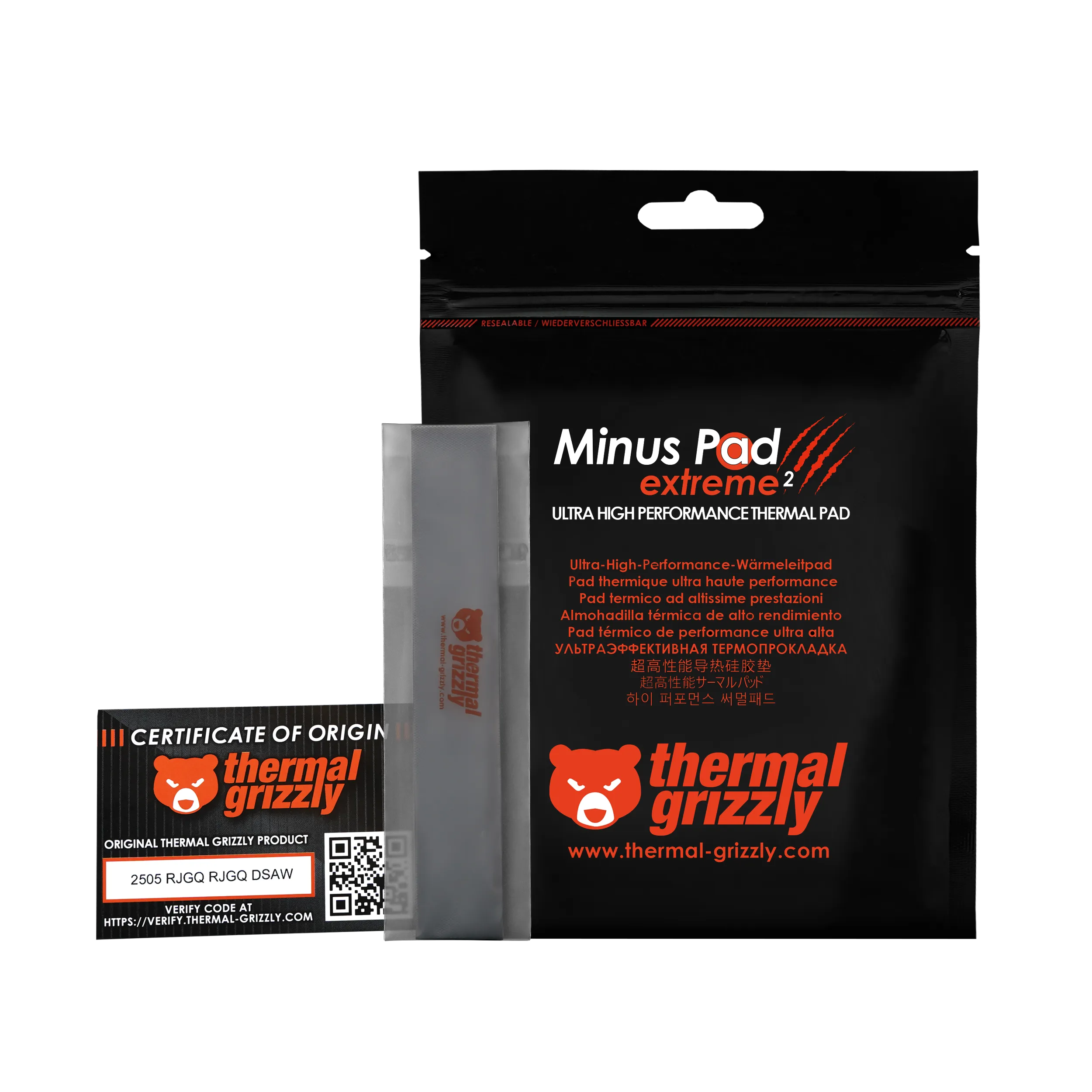 The Thermal Grizzly Minus Pad extreme 2 thermal pad is designed for high-performance applications. Due to the varying particle sizes of its individual components (aluminum oxide, aluminum hydroxide, aluminum powder), even the smallest gaps in the carrier material (matrix) can be filled with thermally conductive particles. This is especially true for the surfaces (top and bottom) of the Minus Pad extreme 2, where the optimized material composition offers low thermal interface resistance and promotes optimal heat transfer.