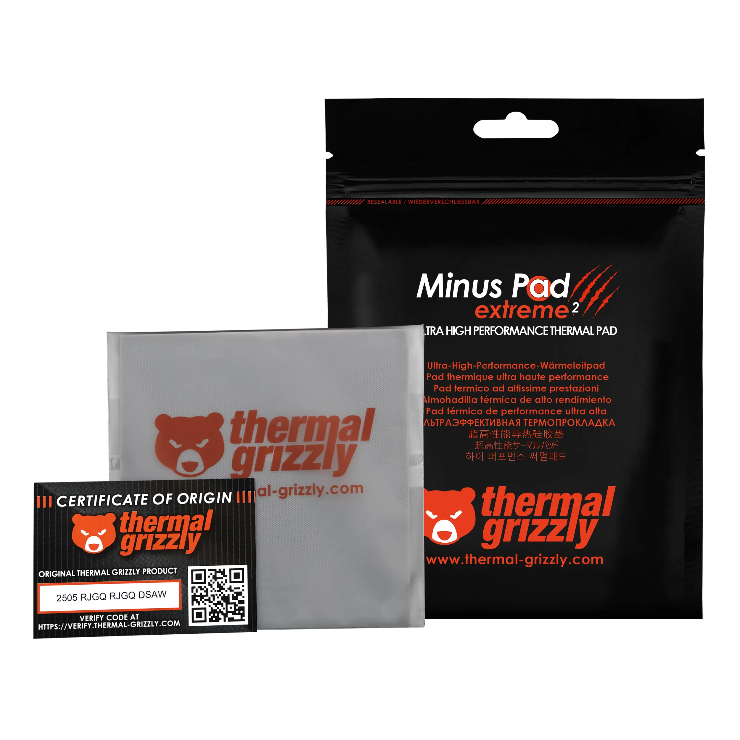 The Thermal Grizzly Minus Pad extreme 2 thermal pad is designed for high-performance applications. Due to the varying particle sizes of its individual components (aluminum oxide, aluminum hydroxide, aluminum powder), even the smallest gaps in the carrier material (matrix) can be filled with thermally conductive particles. This is especially true for the surfaces (top and bottom) of the Minus Pad extreme 2, where the optimized material composition offers low thermal interface resistance and promotes optimal heat transfer.