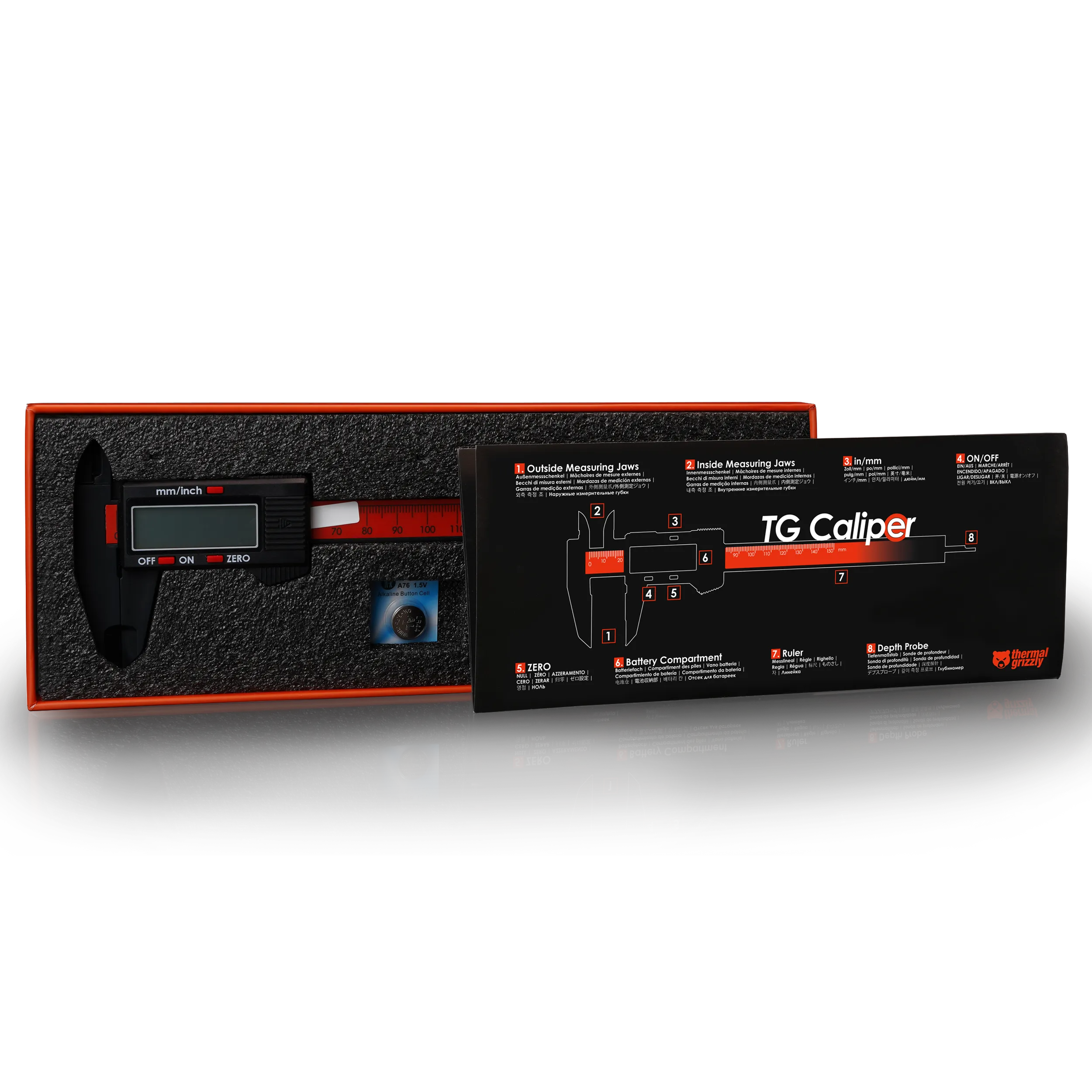 The TG Caliper is an affordable digital caliper that can be used, for example, to measure the thickness of thermal pads or the length of screws. Other typical measurements include determining inside and outside diameters as well as the wall thickness of soft and hard tubes. The measuring range is up to 150 mm / 6 inches. The measured values are displayed on the LCD in either the metric or imperial system, with a resolution/readout of 0.1 mm / 0.01 inch and an accuracy of ±0.2 mm / 0.01 inch. A zero function allows two measurements to be compared easily.