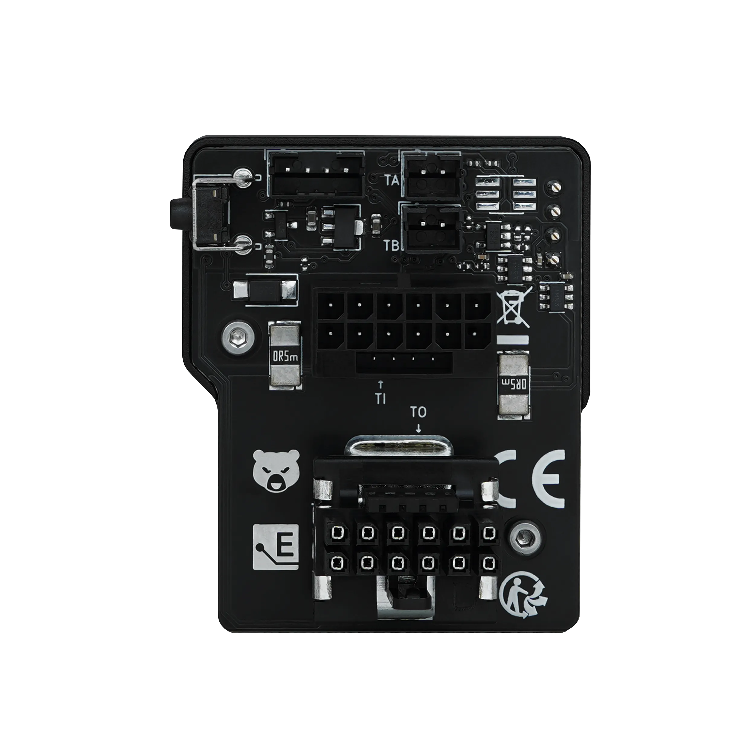 Two temperature sensors located on the board at the power connectors monitor the temperatures at the power connectors. Up to 600 watts of power can flow through the connectors, which can cause them and the board around them to heat up significantly. An audible alarm will sound if the temperature exceeds an adjustable limit. Two additional included temperature sensors (10K NTC) can be connected via cables. Two sensors with cable lengths of 5 cm and 20 cm are included. The alarm can also be triggered if the adjustable current limit (amps) is exceeded.