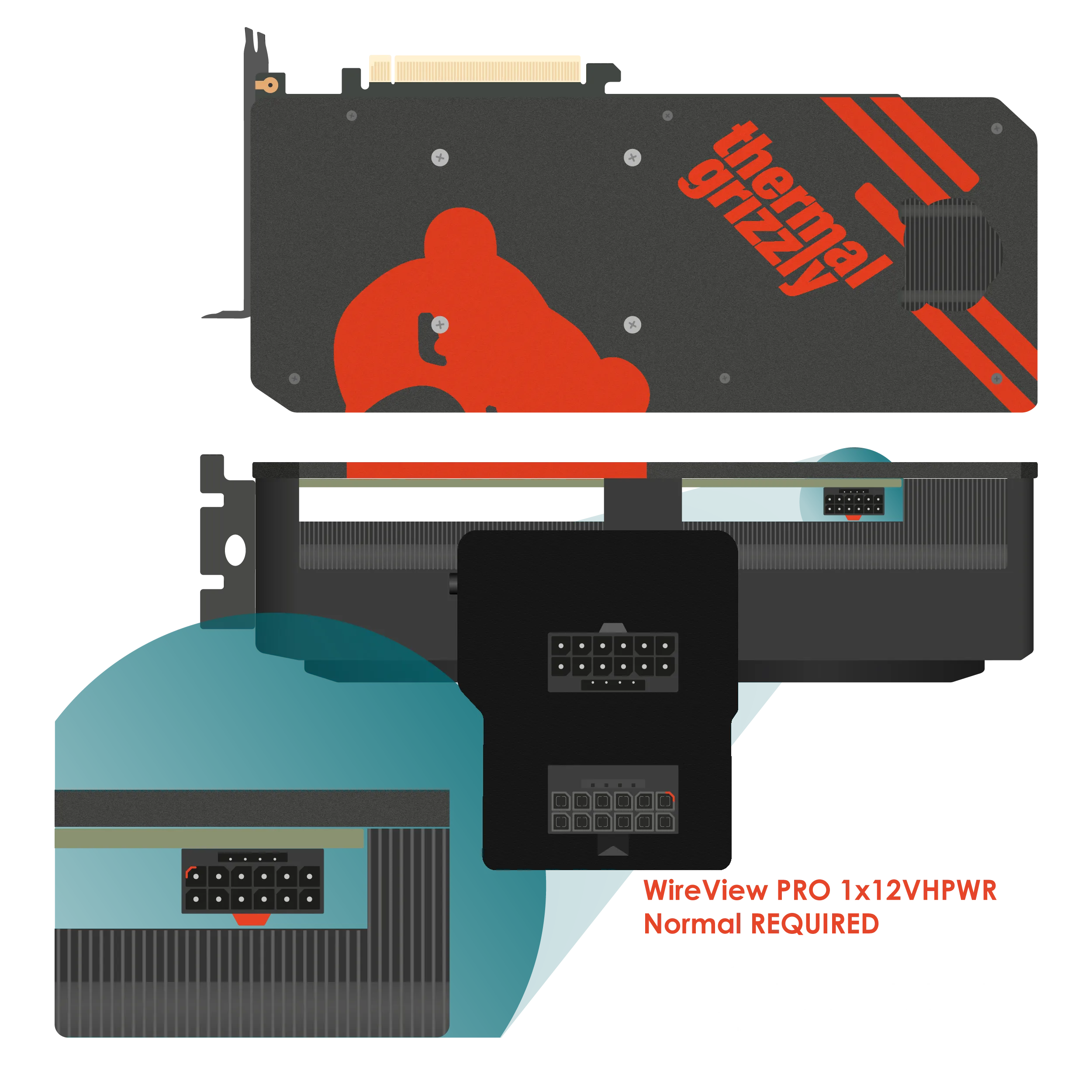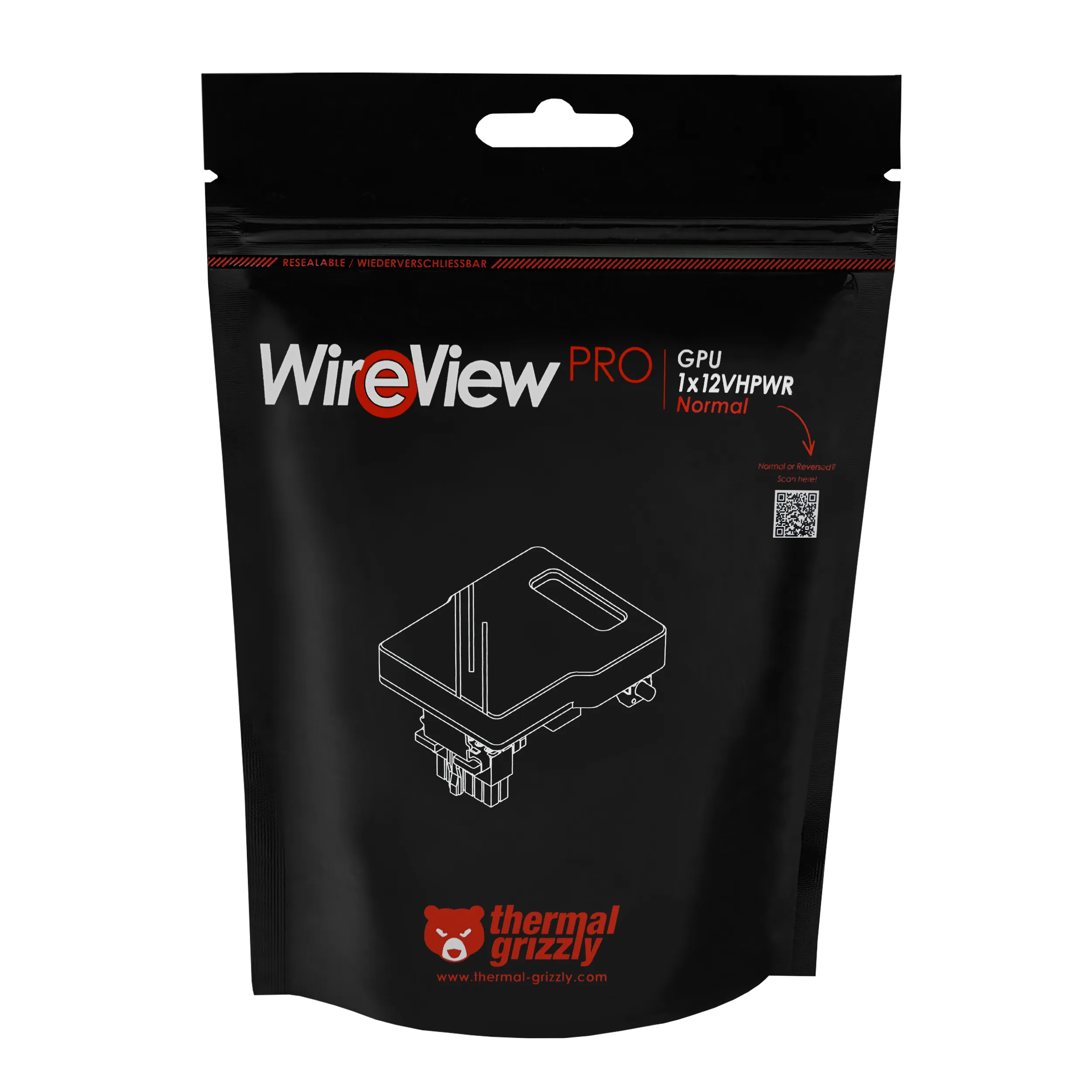 The WireView Pro GPU is available with the 12VHPWR 16-pin power connector (4x sensor + 12x power/ground) in "Normal" (N) and "Reverse" (R) versions:
