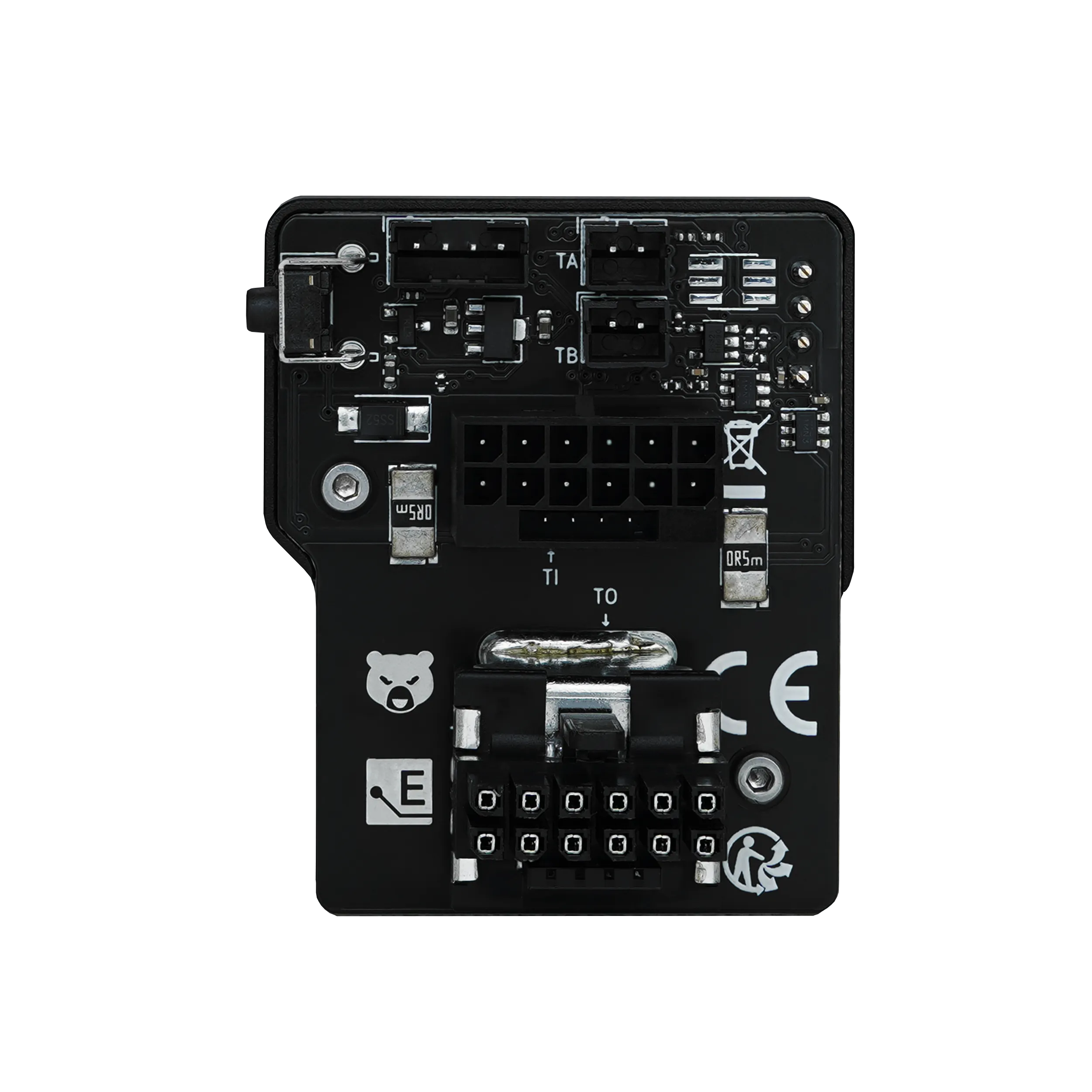 Two temperature sensors located on the board at the power connectors monitor the temperatures at the power connectors. Up to 600 watts of power can flow through the connectors, which can cause them and the board around them to heat up significantly. An audible alarm will sound if the temperature exceeds an adjustable limit. Two additional included temperature sensors (10K NTC) can be connected via cables. Two sensors with cable lengths of 5 cm and 20 cm are included. The alarm can also be triggered if the adjustable current limit (amps) is exceeded.