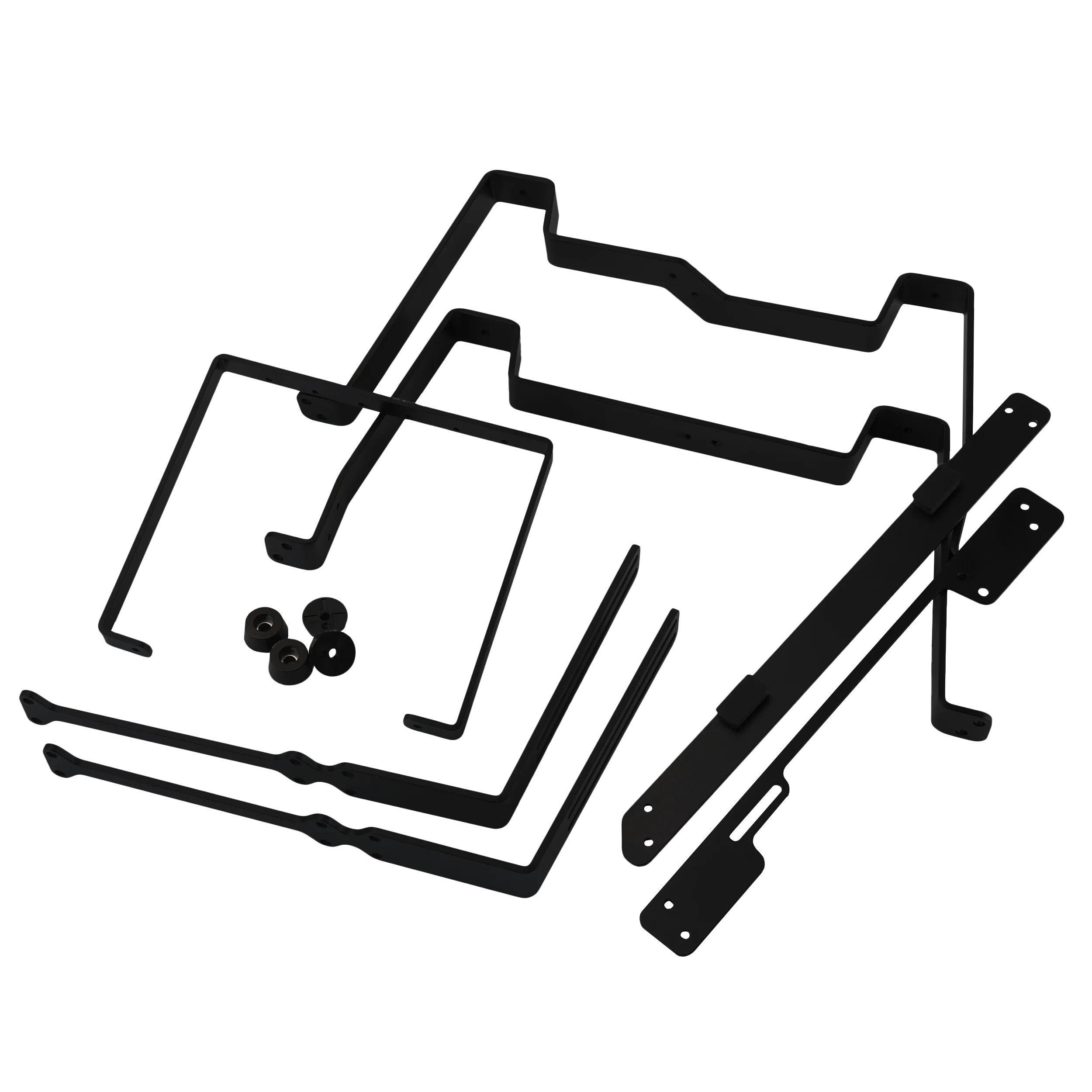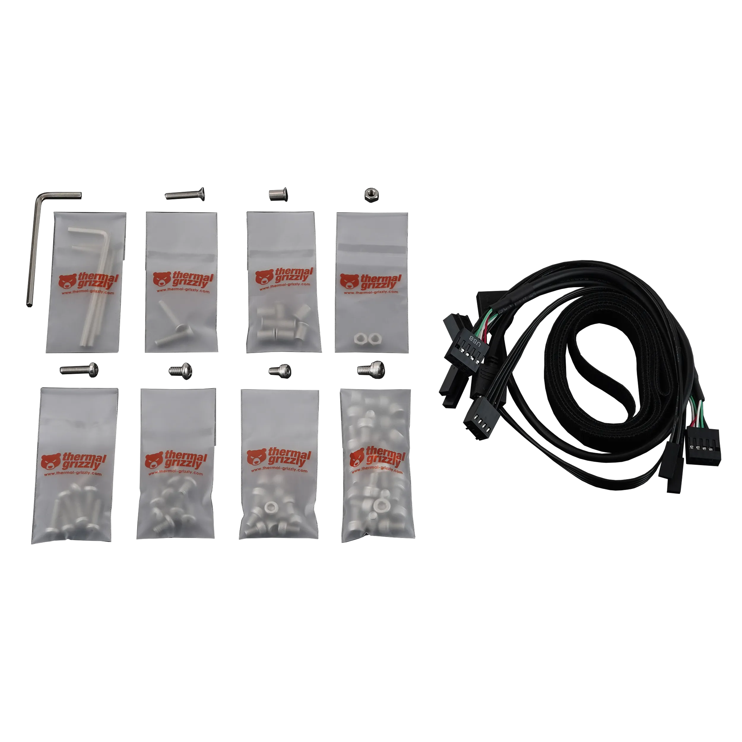 La PCB del der8enchtable cuenta con separadores preinstalados para placas base ATX, que pueden reconfigurarse para placas Micro-ATX y Mini-ITX. En la sección inferior del chasis de aluminio negro anodizado se puede montar una fuente de alimentación, y se incluye una correa de Velcro recortable para la gestión de cables. Si no se necesita la sección inferior del chasis, los pies pueden fijarse directamente a la unidad base con PCB integrado, haciendo que el der8enchtable sea significativamente más compacto.