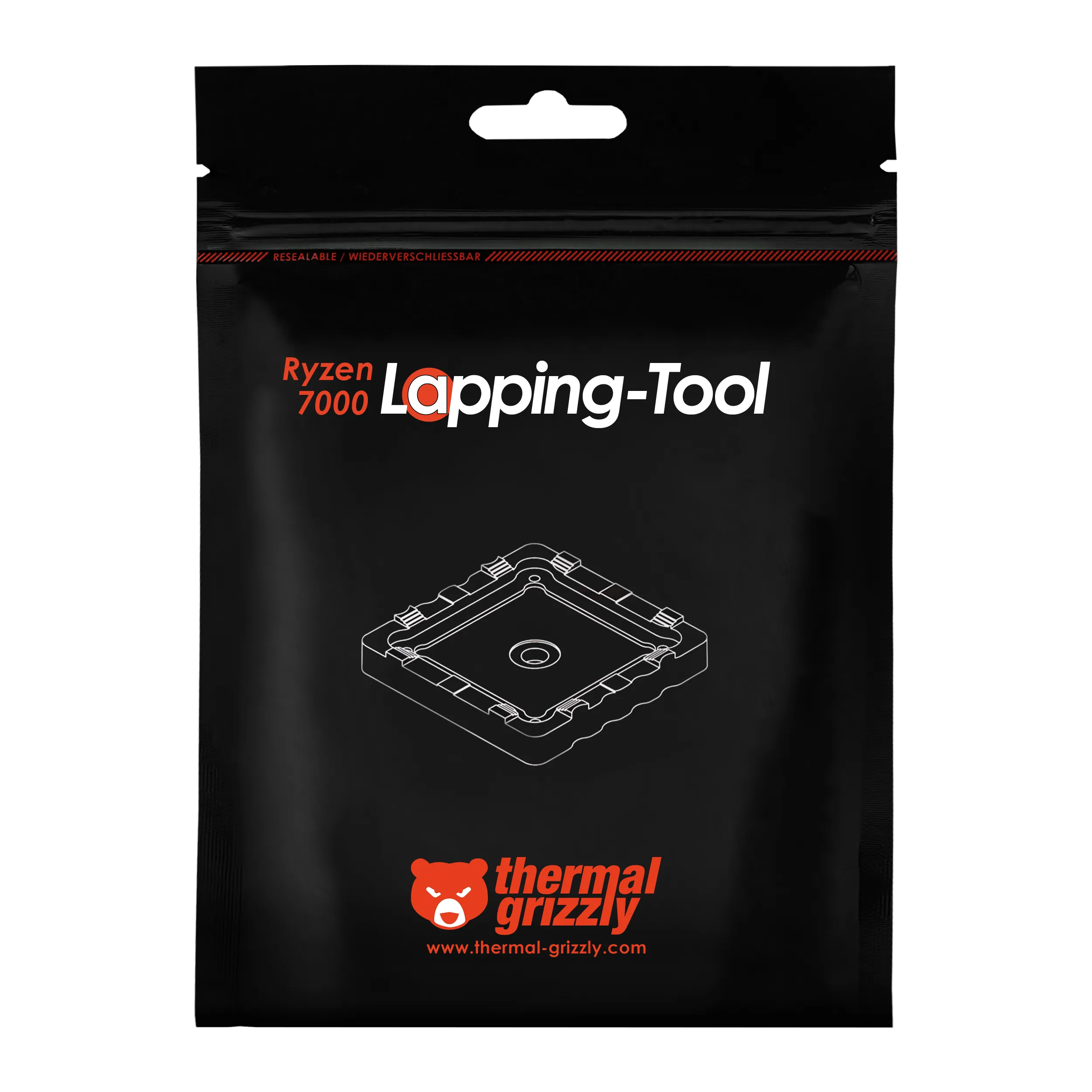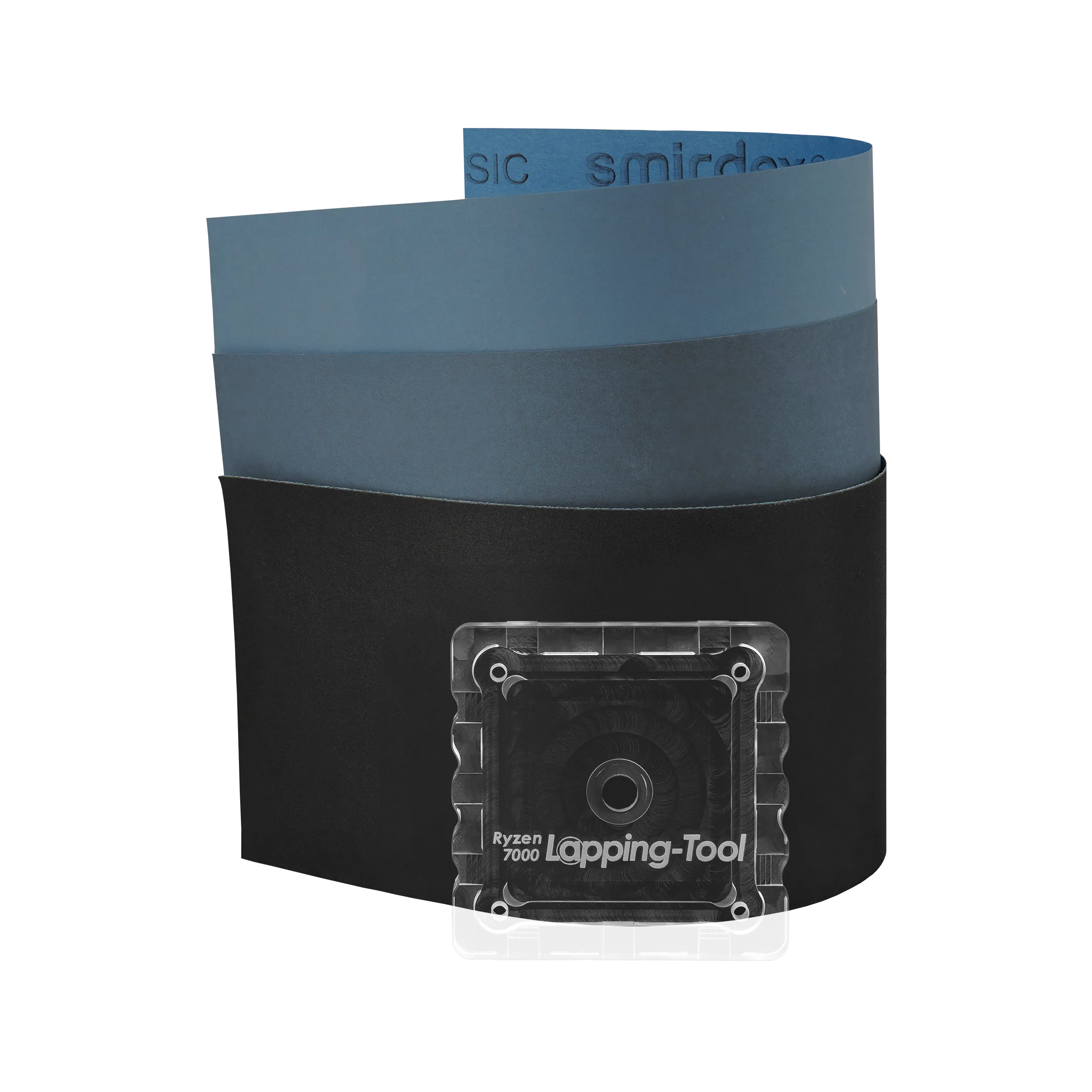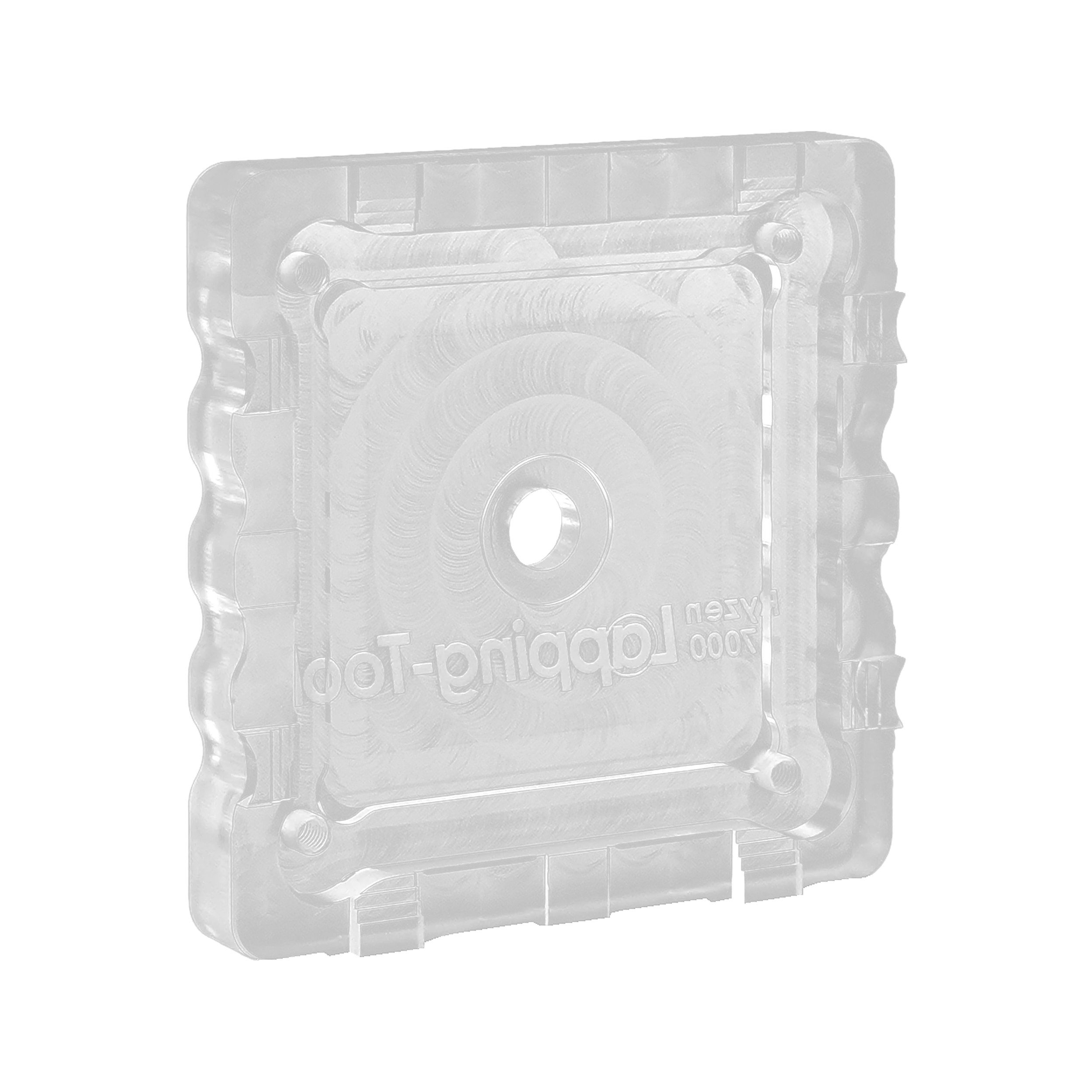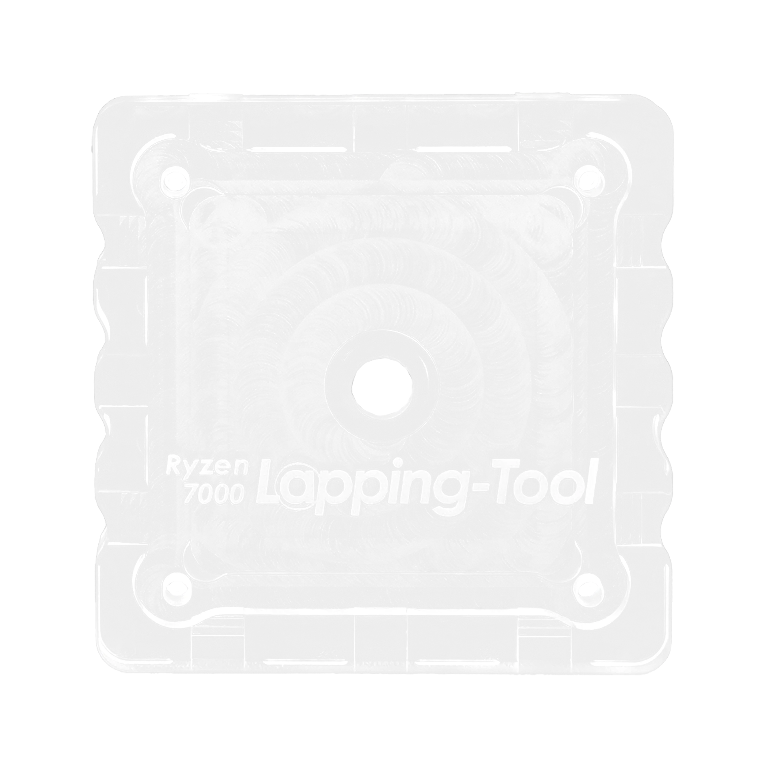 La herramienta de lapeado Ryzen 7000 ha sido desarrollada para el rectificado de los disipadores térmicos de la serie de procesadores AM5 de AMD. Las tolerancias de la Ryzen 7000 Lapping-Tool permiten rectificar gradualmente el disipador térmico en 0,4 milímetros, hasta una altura total de 1,6 milímetros. Cuando se utiliza el marco de montaje AMD normal (SAM), se proporciona un lijado máximo de 1,0 mm hasta alcanzar los escalones centrales. Otros 0,6 mm sólo son posibles si la CPU se monta con un marco adecuado de contacto y estanqueidad AM5, por ejemplo. Los pasos de la herramienta de lapeado Ryzen 7000 están fresados con diamante para lograr un alto nivel de transparencia. Esto permite ver qué pasos se han alcanzado y cuáles no durante el rectificado.