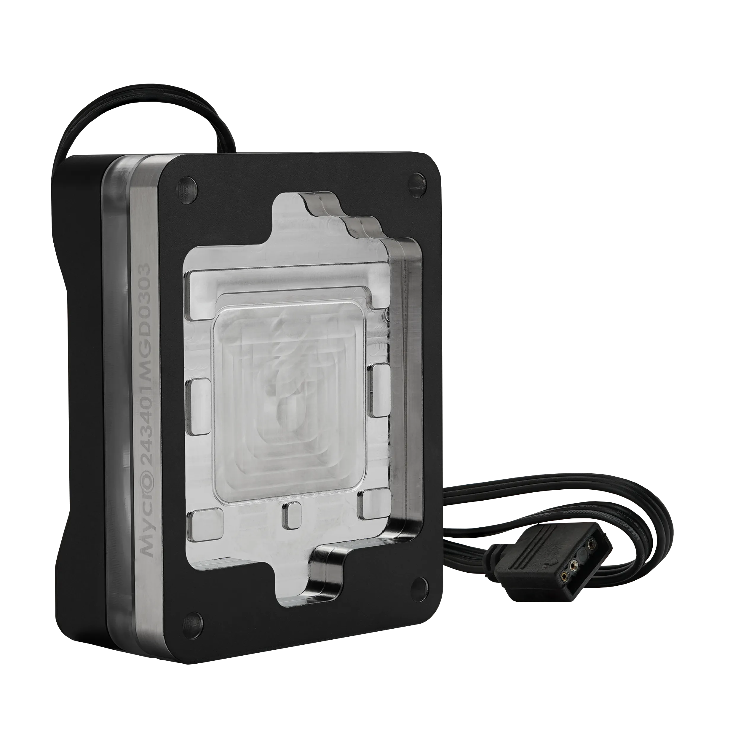 El AMD Mycro Direct-Die Pro RGB V1 cuenta con una estructura híbrida con dos tamaños diferentes de microaletas y una placa de chorro (jet plate) para optimizar el flujo. La placa fría del bloque está hecha de cobre niquelado y se monta directamente sobre el chip de la CPU. Para ello, se retira el mecanismo de retención del socket (Socket Actuation Mechanism, SAM) de la placa base y el procesador debe ser deliddeado. El niquelado de la placa del bloque crea una capa de barrera que evita que el metal líquido a base de galio se difunda en el cobre, lo que hace que normalmente no sea necesaria la aplicación repetida de metal líquido.